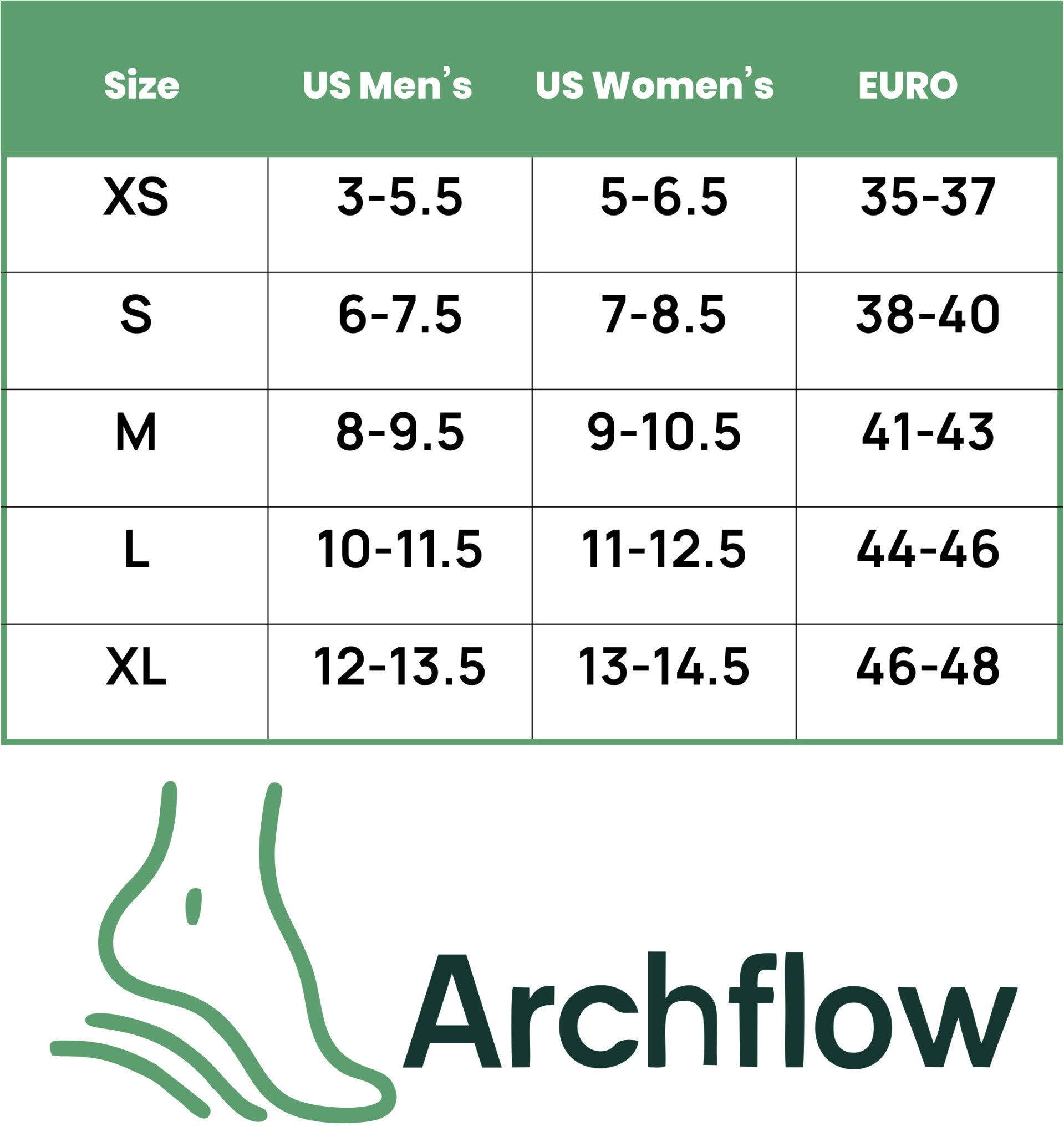 To get the best fit, it’s important to pick the right size. Please check your shoe size carefully before ordering; we list Archflow in both